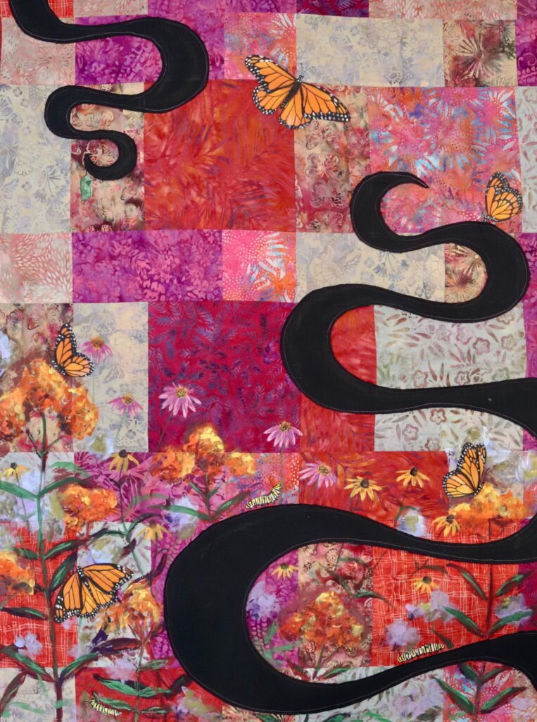 I am an art educator and completed my B.S. in Art Education with a concentration in painting in 2011 and have been teaching art in public schools for the last 13 years. In 2007, I began quilting and continued to dabble in a variety of media. I have continued to travel down the road of combining media and artistic styles to create work, being influenced by my environment.