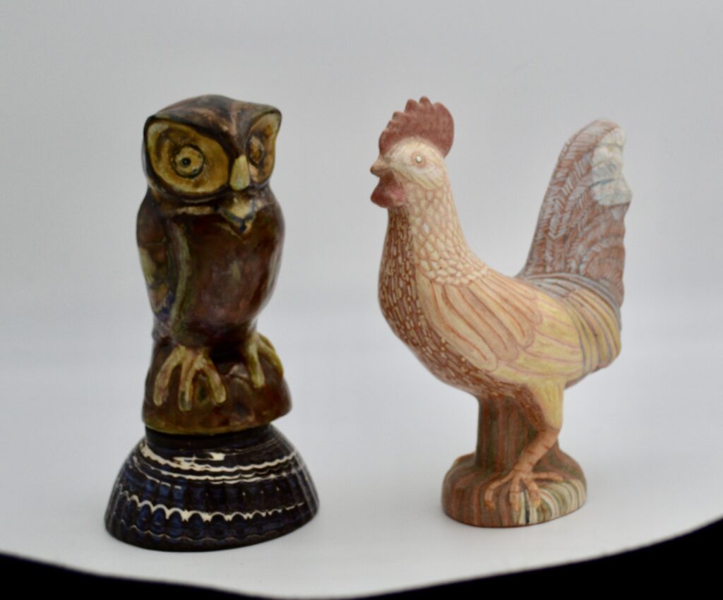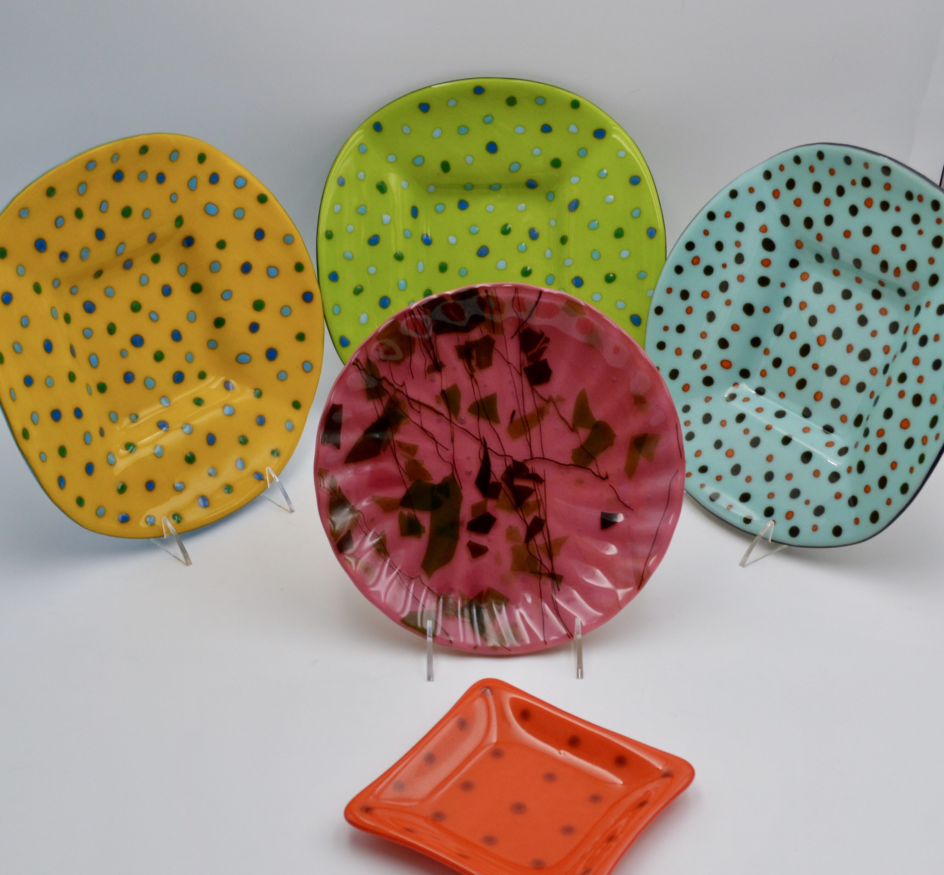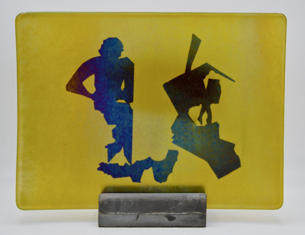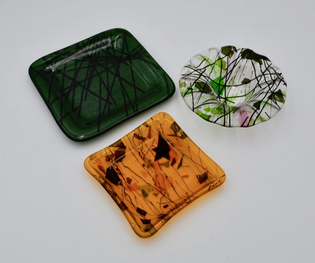 This is a continuation of mold making for ceramics. These molds include subjects such as mermaids, Adam and Eve, trees, and abstract compositions. Other pieces are glass cut in different shapes, fused together, and slumped into molds or shaped with hangers fired in.
