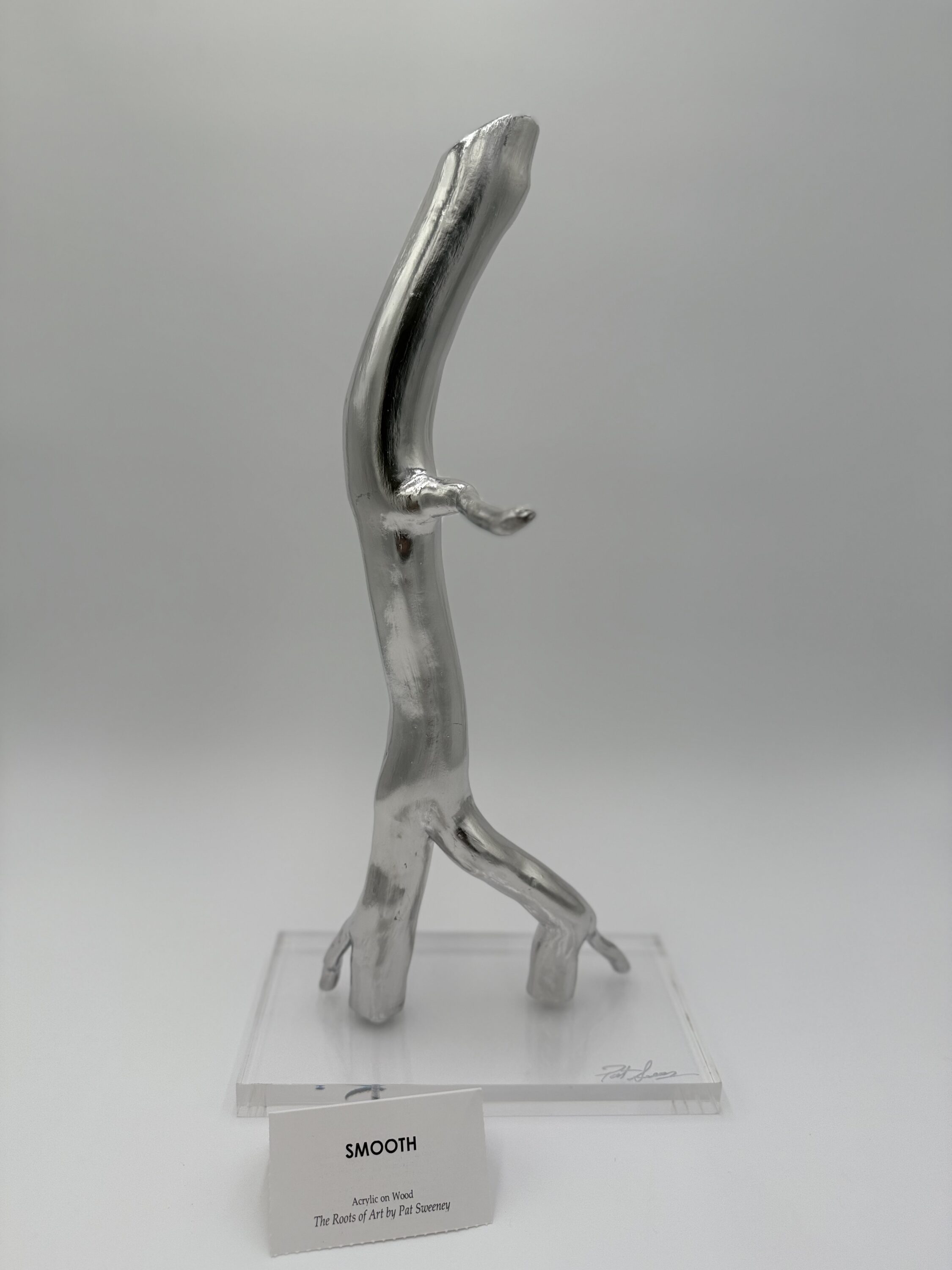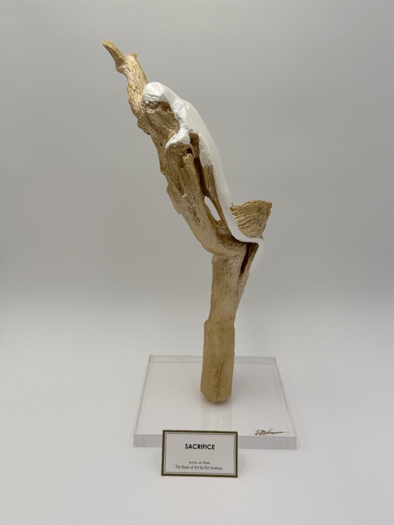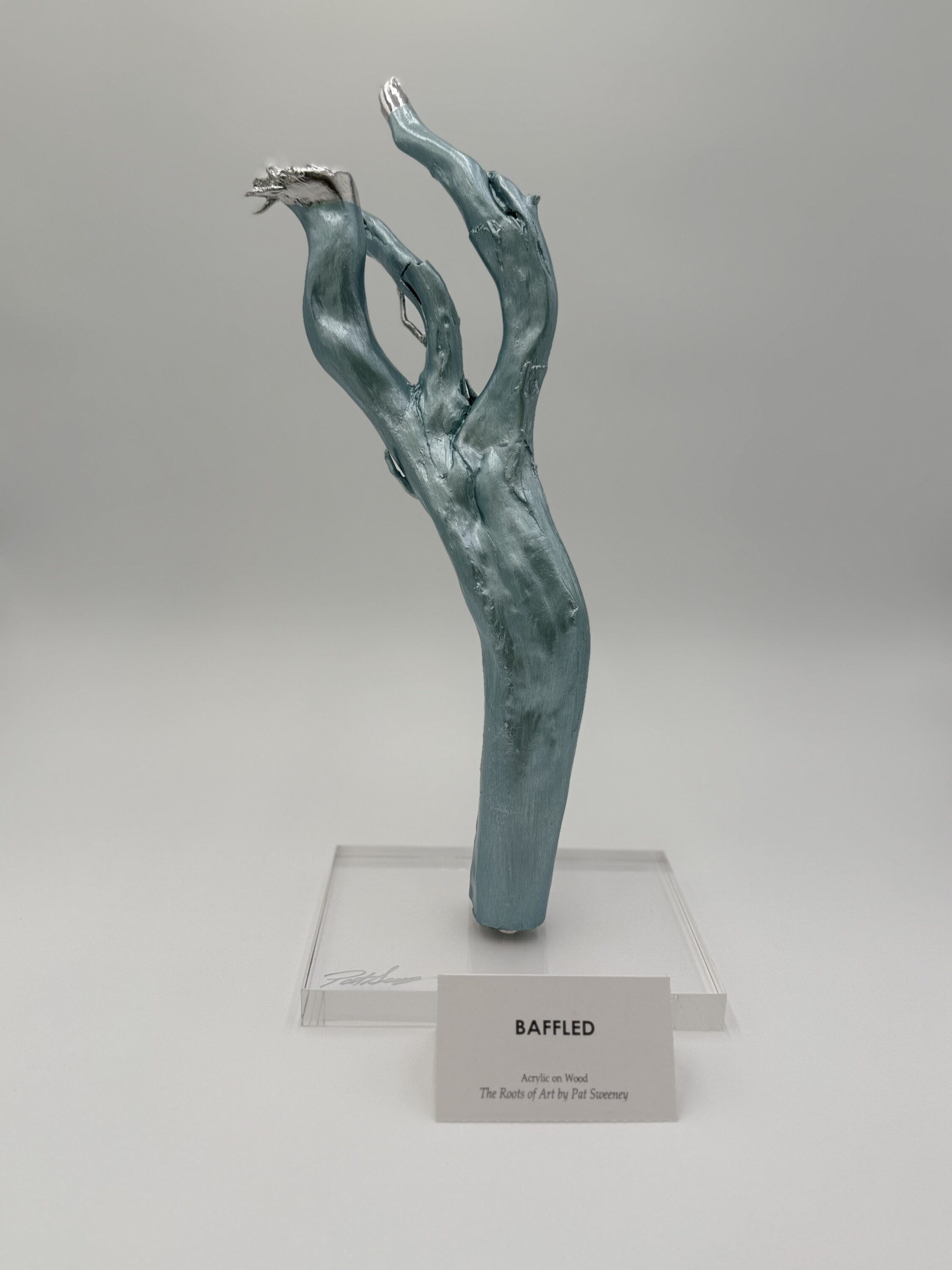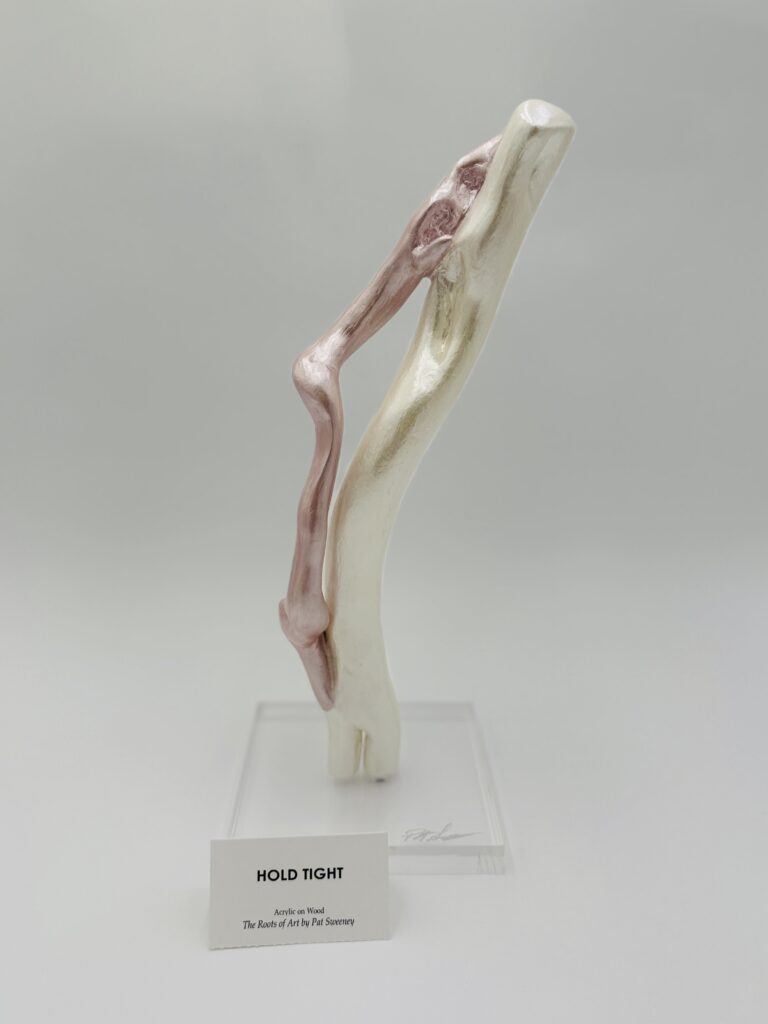Each piece goes through a long and detailed process. It begins with me searching for the perfect piece of wood, which can take anywhere from hours to months. Once I bring the roots back to my shop, I carefully study each piece to understand its natural shape, character and energy. Then, I start working—cutting, trimming, sanding, and drying the wood. After that…I prime, sand, and hand-paint (brush only) each piece using acrylic paints that I’ve personally altered, making every artwork truly unique.