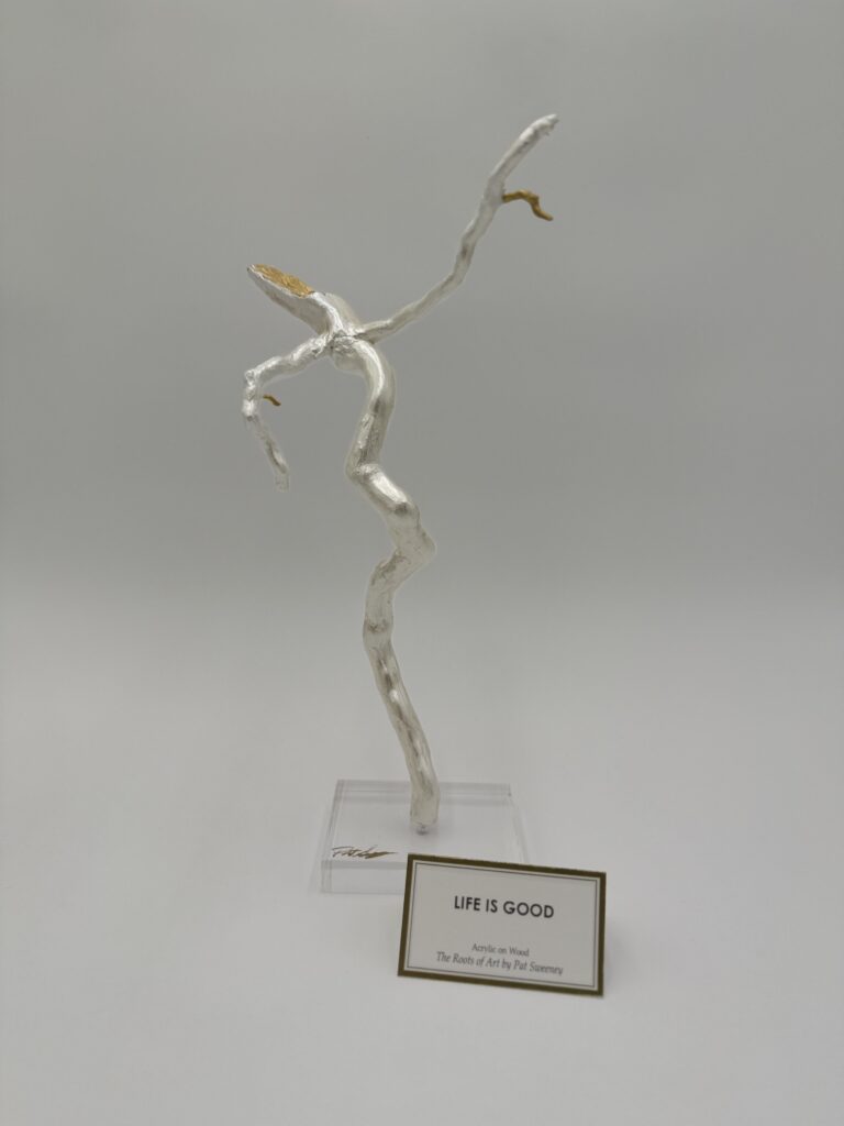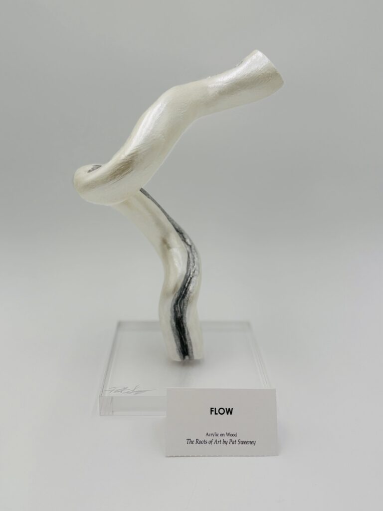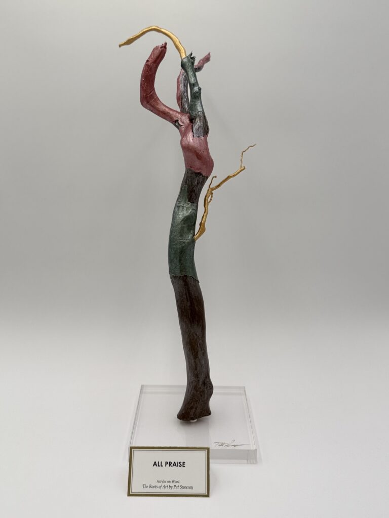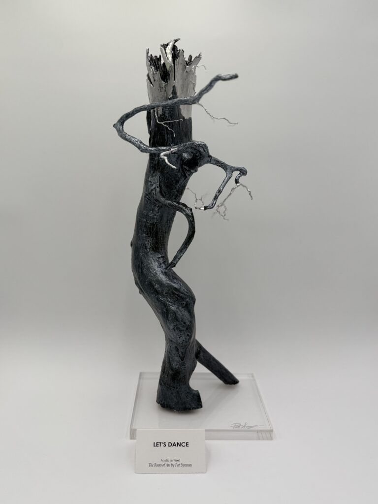Each piece goes through a long and detailed process. It begins with me searching for the perfect piece of wood, which can take anywhere from hours to months. Once I bring the roots back to my shop, I carefully study each piece to understand its natural shape, character and energy. Then, I start working—cutting, trimming, sanding, and drying the wood. After that…I prime, sand, and hand-paint (brush only) each piece using acrylic paints that I’ve personally altered, making every artwork truly unique.