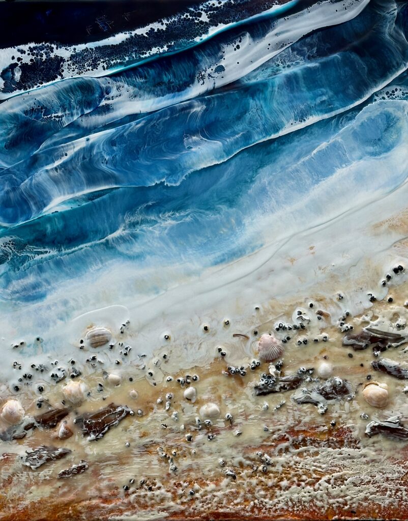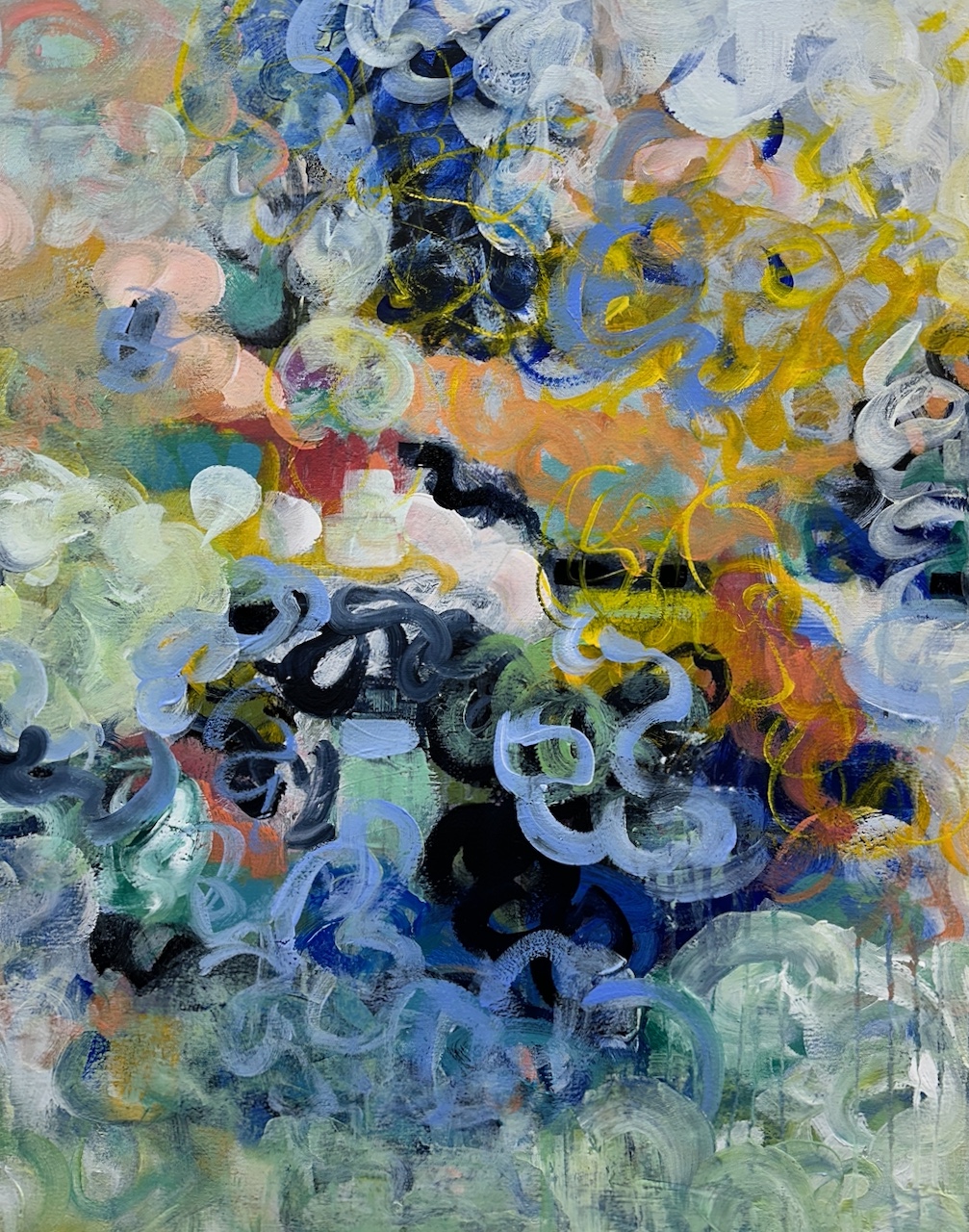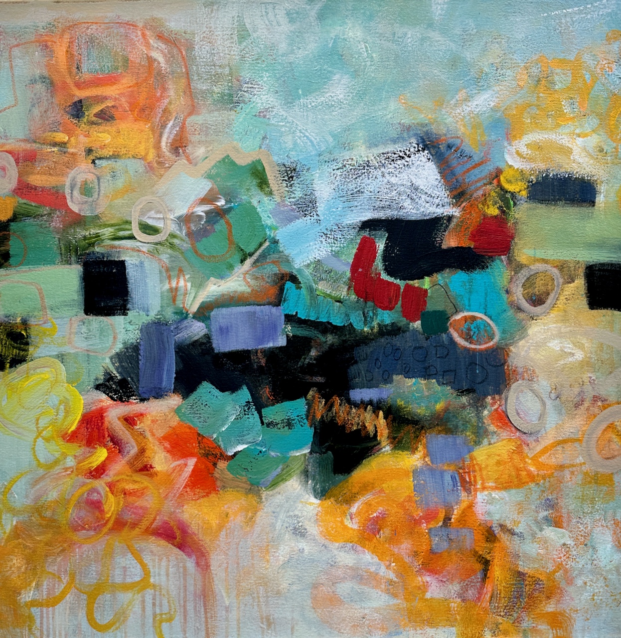 I want my paintings to convey a rich, vibrantly colored, visual and tactile experience connected to feelings evoked by the mystery and beauty of life and the passage of time. My process involves discovery: I don’t know all of what will emerge as I paint, and so, I see painting as an act of faith and a way to express and connect.